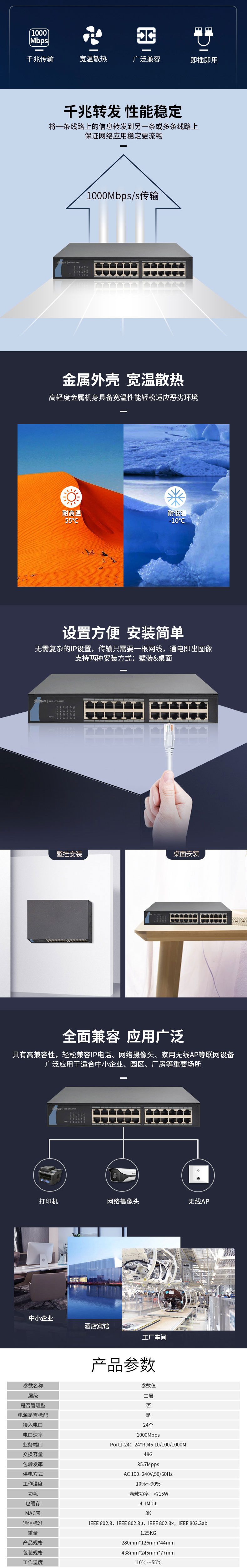 大华 24口千兆交换机 安防企业级DH-S3000C-24GT