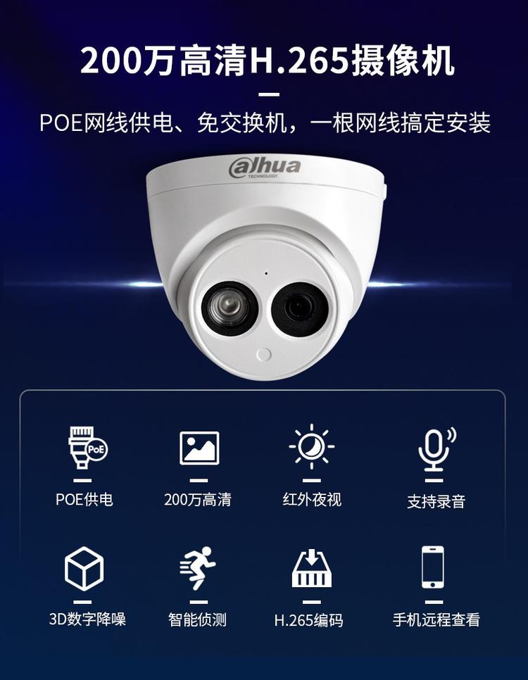 大华200万网络高清摄像头带POE DH-IPC-HFW1230M-I2-V2